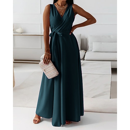 Per donna Abito Lungo Maxi Abito Abito nero Tubino Elegante Moda Moderno Quotidiano Ufficio Ferie Vestibilità regolare Semplice Senza Maniche Scollo a V Blu Vino Rosso Verde Estate Primavera Autunno