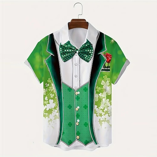 festa di san patrizio quadrifoglio camicia casual da uomo abbigliamento quotidiano per uscire nel fine settimana estate couverture maniche corte verde menta, verde scuro, verde s, m, l camicia in