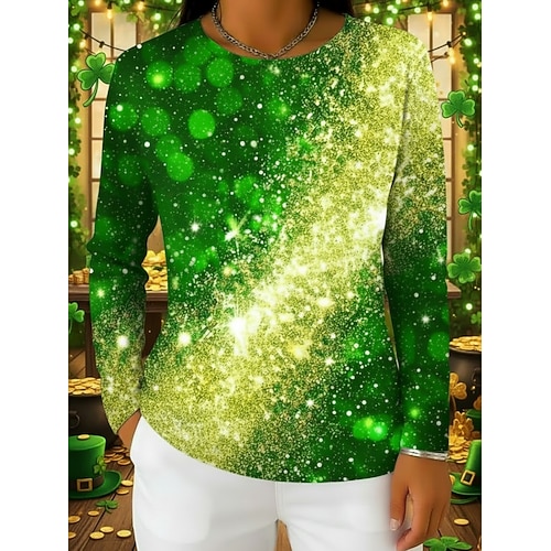 Festa di San Patrizio Per donna Maglietta Trifoglio Moda Classico Casual Manica Lunga Girocollo Top Regolari Quotidiano Weekend Abbigliamento da vacanza Stampato Verde chiaro Verde scuro Verde Estate