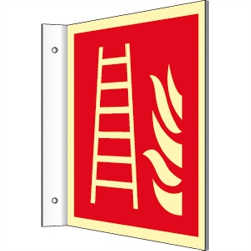 Fahnenschild Feuerleiter ISO 7010, Kunststoff, nachleucht., 160-mcd, 200x200 mm