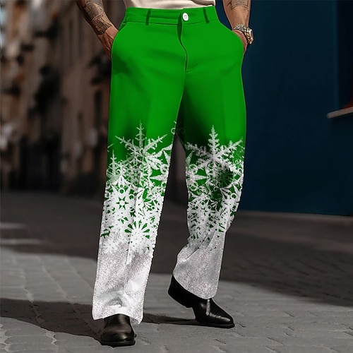 Natale Per uomo Fiocco di neve Colore sfumato Pantaloni Pantaloni Eleganti Pantaloni da Abito Misura del girovita medio Moda Casual Feste Ferie Pantaloni eleganti con vestibilità comoda e tasche