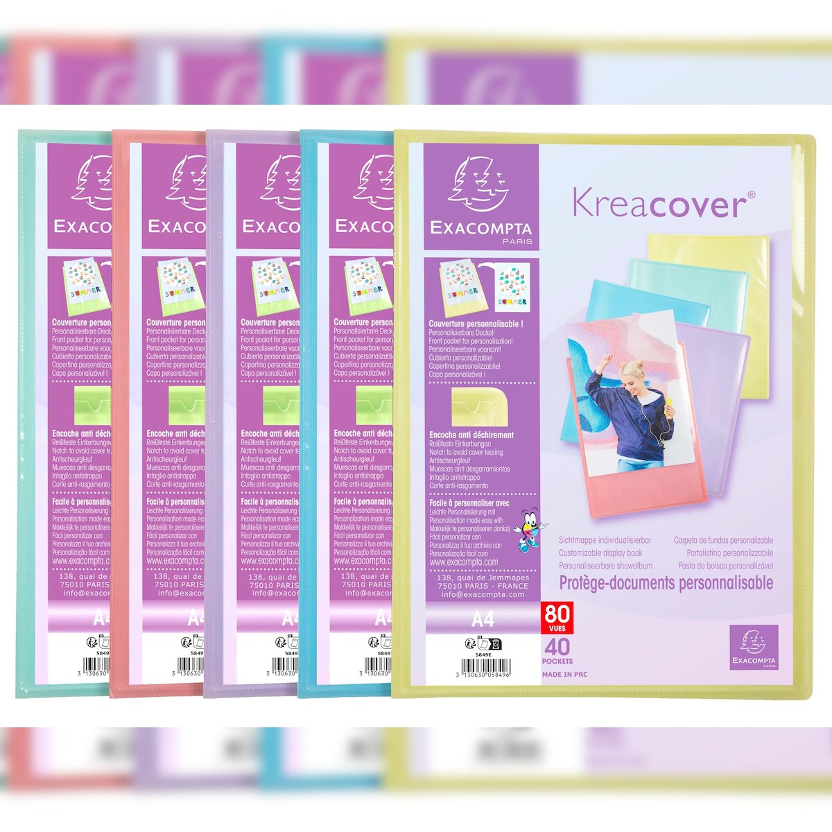 Exacompta 5849E 10x Sichtmapppen A4, PP, 40 Hüllen, Kreacover Pastell - Farben sortiert