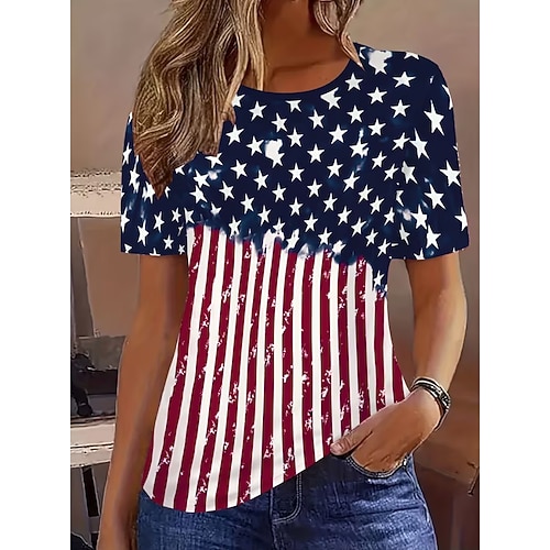 Giorno dell'Indipendenza Americana Per donna Maglietta Grafico Bandiera Americana Vintage Elegante Classico Manica Corta Girocollo Top Regolari Quotidiano Weekend Stampato Blu Nero Bianco Rosa Rosso
