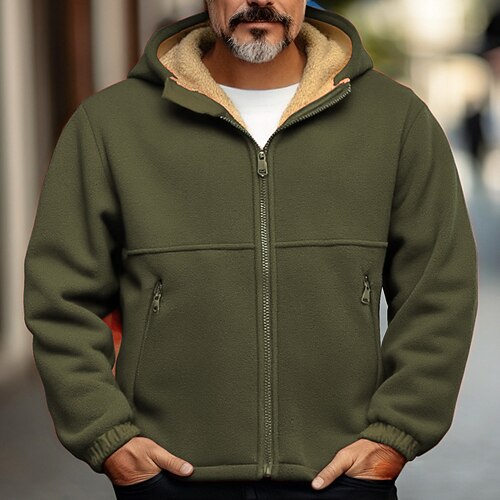 Per uomo Felpa con cappuccio a zip intera Felpa con cappuccio e zip Sherpa morbido Giacca in Pile Felpa con cappuccio in pile Nero Verde militare Blu Marrone Cachi Con Cappuccio Grafico Con zip