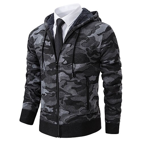 Per uomo Felpa con cappuccio Felpa con cappuccio a zip intera Felpa con cappuccio in pile Felpa con cappuccio foderata in pile Felpa con cappuccio mimetica Verde militare Blu Grigio scuro Beige Con