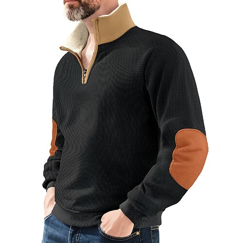Per uomo Maglia Felpa in pile Felpa con zip corta Felpa con cappuccio foderata in pile Nero Blu marino Cachi Grigio chiaro Grigio scuro Con Cappuccio Semplice Patchwork Sport Outdoor Casuale