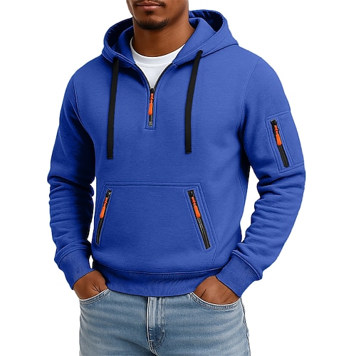 Per uomo Felpa con cappuccio Felpa con cappuccio e zip corta Felpa con cappuccio in pile Felpa con cappuccio tattica Nero Blu marino Blu Reale Cachi Grigio chiaro Con Cappuccio Semplice Cerniera