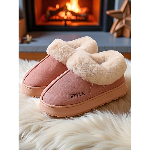 pantofole di cotone da donna invernali chiuse, morbide e pelose, comode e calde, per interni ed esterni