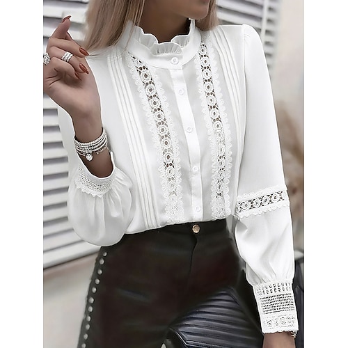 Per donna Camicia Camicia di Pizzo Blusa Pizzo Patchwork Semplice Attivo Elegante Manica Lunga Colletto a Camicia Top lunghi Quotidiano Ferie Uscire Nero Bianco Rosa Azzurro cielo Beige Estate