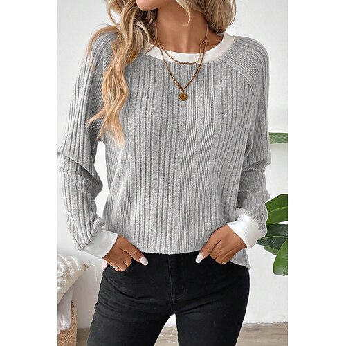 Per donna Elegante Vintage Sport Camicia Manica Lunga Scollo a V Semplice All'aperto Feste Yoga Nero Bianco Rosa Primavera Vestibilità comoda