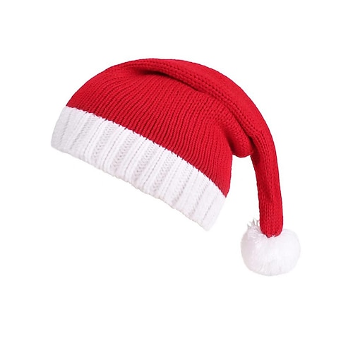Cappello da Babbo Natale lavorato a maglia per donne e bambini, comodo cappello natalizio in poliestere con pompon, perfetto per foto di famiglia delle vacanze e regali di Natale