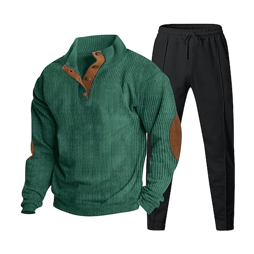 Per uomo Tuta da Ginnastica Set di abiti Set di felpe con cappuccio Collo alla coreana All'aperto Quotidiano Sportivo Blocco di colori Nero Blu marino Blu Poliestere Velluto a coste Abbigliamento