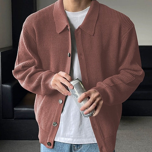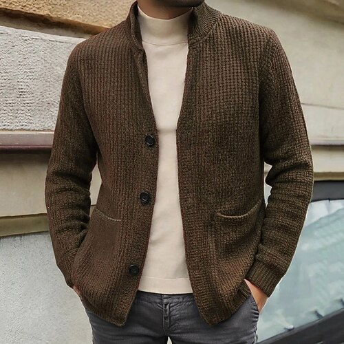 Per uomo Cardigan Maglione Corto Maglione a maglia A Coste Maglia Top Regolari Cardigan con Bottoni Tasca Semplice Collo alla coreana Moda Classico Vacanza Abbigliamento quotidiano Abbigliamento