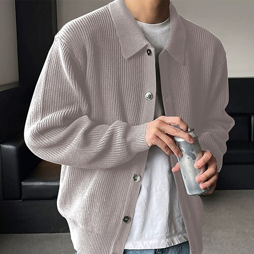 Per uomo Felpa Cardigan A Coste Maglia Top Regolari Lavorato a maglia Semplice Collo ripiegato Vacanza Moda Casuale Abbigliamento quotidiano Abbigliamento Primavera Autunno Nero Blu S M L