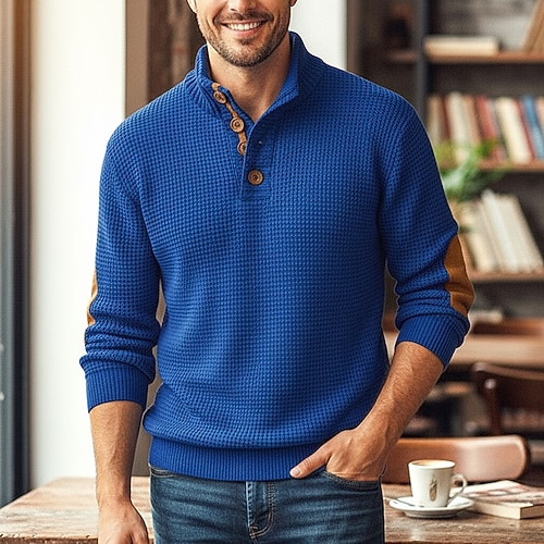 Per uomo Maglione Maglione in maglia a trecce Maglione con toppe A Coste Maglia Top Regolari Lavorato a maglia Semplice Collo alla coreana Vintage Tenere al Caldo Abbigliamento quotidiano Uscire