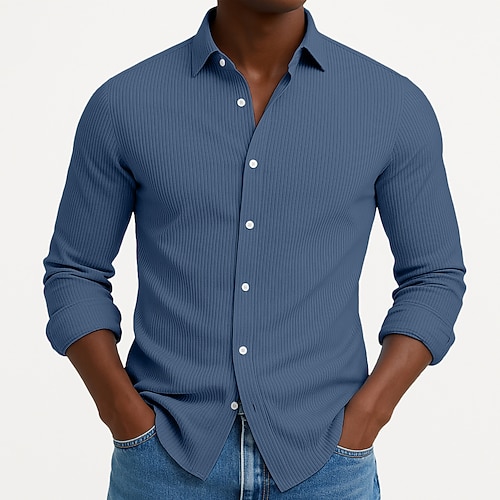 Per uomo Camicia Camicia di Velluto a Coste Camicia con Bottoni Blu Nero Bianco Blu marino Viola Manica Lunga Semplice Collo ripiegato Casuale Quotidiano Bottonato Abbigliamento Cotone Moda