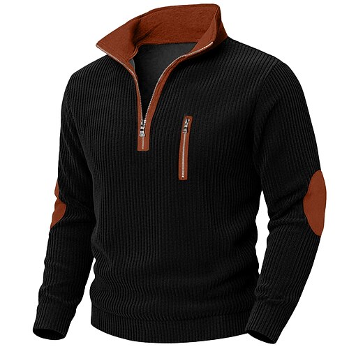 Per uomo Felpa Felpa con zip Felpa di velluto a coste Nero Blu Marrone mezza cerniera Color Block Collage Sportivo Giornaliero Per eventi Vello Streetwear Informale Vello sottile Autunno inverno