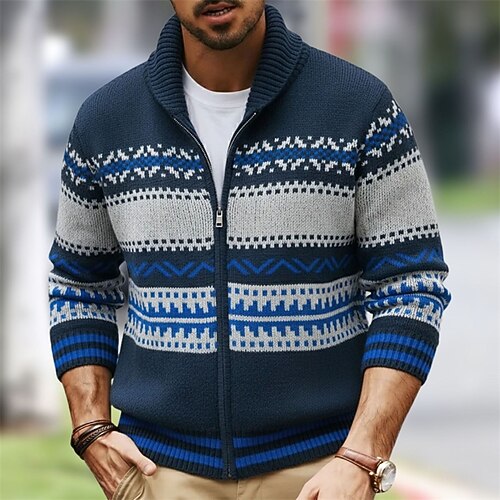 Per uomo Felpa Cardigan Maglione Fair Isle Maglione con Zip A Coste Maglia Top Regolari Lavorato a maglia Geometrico Collo a scialle Vacanza Moda Casuale Abbigliamento quotidiano Abbigliamento