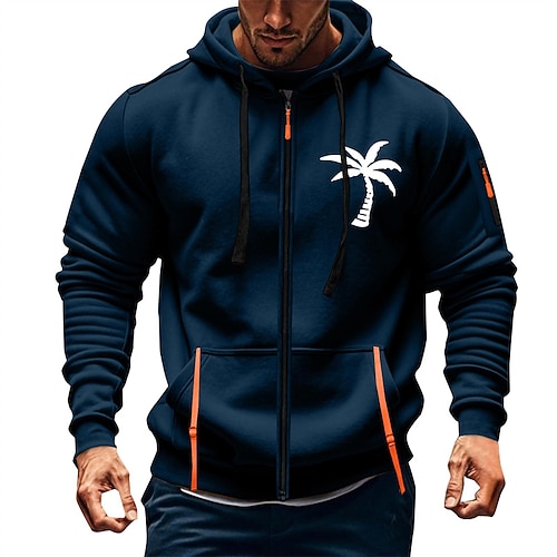 Per uomo Felpa con cappuccio Felpa con cappuccio a zip intera Felpa con cappuccio e zip Blu Nero Cachi Grigio scuro Con Cappuccio Albero di Cocco Con zip Tasca Casuale Quotidiano Sport Outdoor