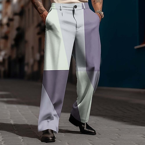 Per uomo Geometrico Blocco di colori Patchwork Pantaloni Pantaloni Eleganti Pantaloni da Abito Misura del girovita medio Casual Business Casual All'aperto Abbigliamento Quotidiano Pantaloni eleganti