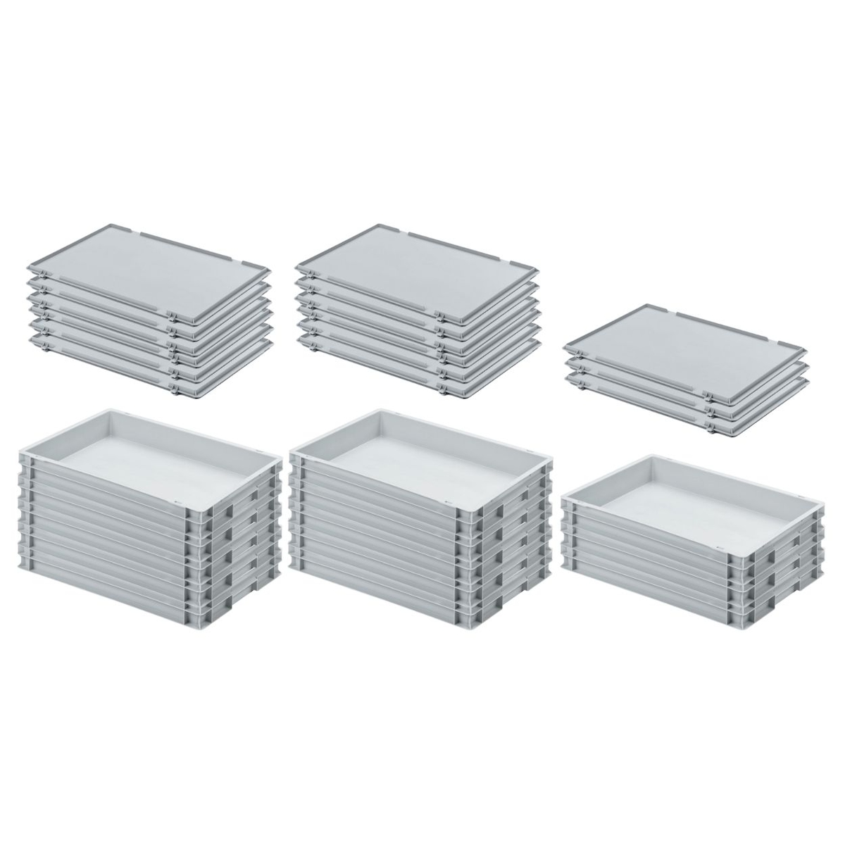 PROREGAL 13x Eurobehälter mit geschlossenem Griff und Scharnierdeckel | HxBxT 7,5x40x60cm | 15 Liter | Grau | Eurobox