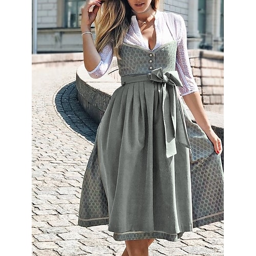 Oktoberfest Vestito Dirndl Abiti tradizionali Oktoberfest / Birra Bavarese Wiesn Prati Per donna Panno in stile tradizionale Vestito Grembiule Senza camicetta