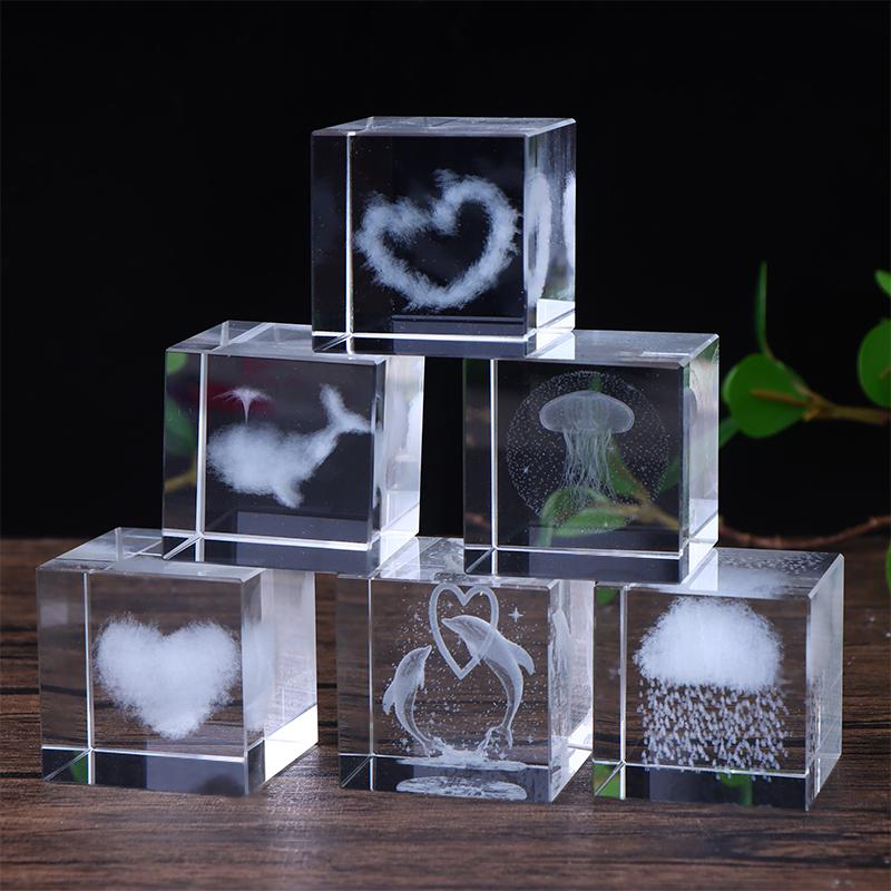 4cm Kristal Kunst Kubus Briefpapiergewicht - 3D Interne Gravure Maan/Hart Melkweg Drijvende Suspensie Decor, Bureau Ornament Cadeau voor Vrouwen/Manne