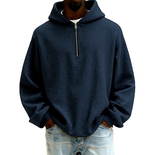 Per uomo Felpa con cappuccio Maglione Felpa con cappuccio e zip corta Nero Verde chiaro Rosa Verde militare Blu marino Con Cappuccio Semplice Cerniera Sport Outdoor Casuale Quotidiano Vintage