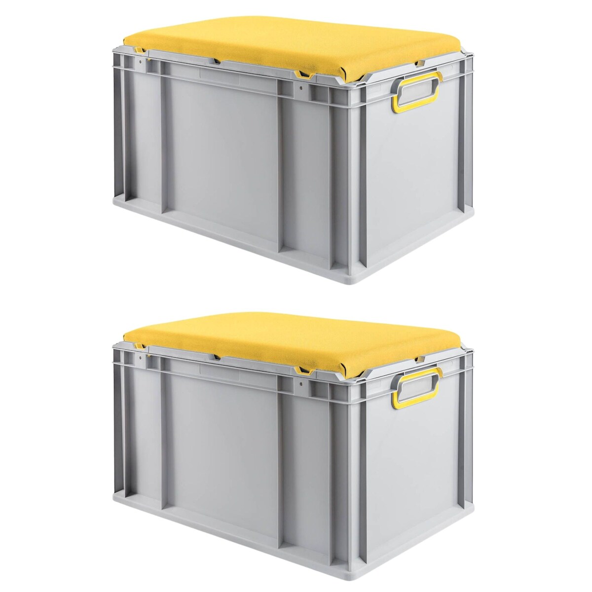 PROREGAL 2x Eurobox NextGen Seat Box Gelb | HxBxT 36,5x40x60cm | 65 Liter | Griffe geschlossen | Eurobehälter, Sitzbox
