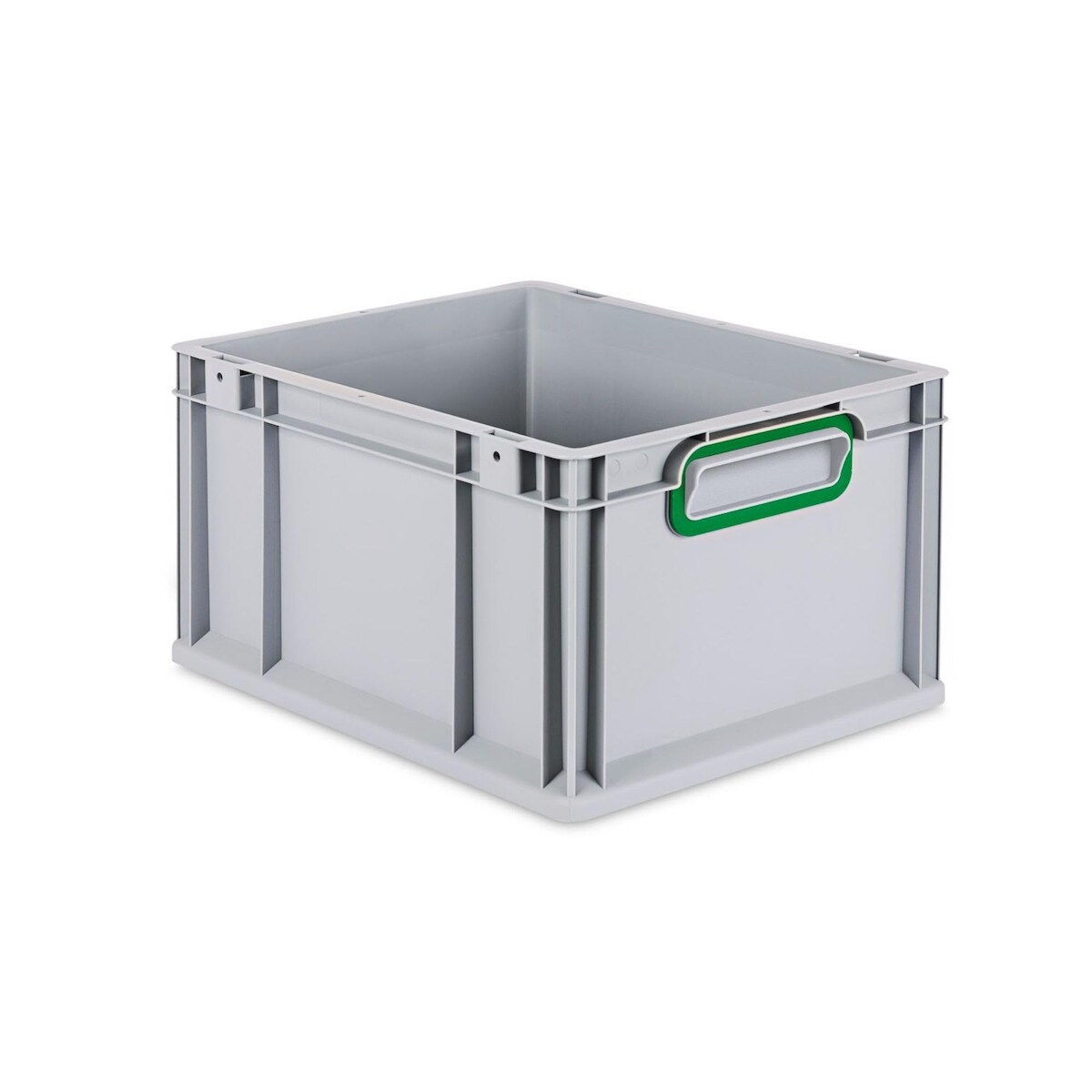Proregal Eurobox NextGen Color, HxBxT 22x30x40cm, 20 Liter, Griffe grün zu, Grau, Eurobehälter, Box, Transportbehälter