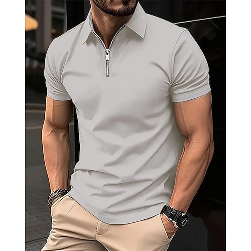 Per uomo Polo con zip a un quarto Camicia da golf Golf Giornaliero Per eventi Chiusura lampo quarto Manica corta Di tendenza Essenziale Liscio Primavera estate Standard Nero Rosa Blu marino Grigio