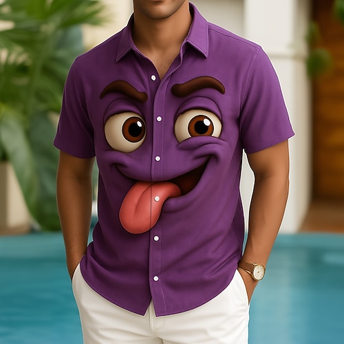 Per uomo Illusione ottica Fantasia Cartone 3D Faccia Sorridente Camicia Camicia con Bottoni Manica Corta Moda Casual Ferie Casual Quotidiano Estate Primavera Collo ripiegato Stampa 3D camicie con