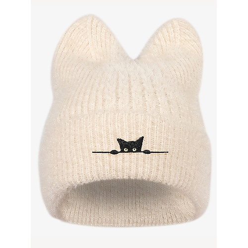 berretto da donna in maglia con orecchie di gatto, grazioso berretto caldo invernale con ricamo di gatto nero, elegante regalo di Natale per ragazze e donne