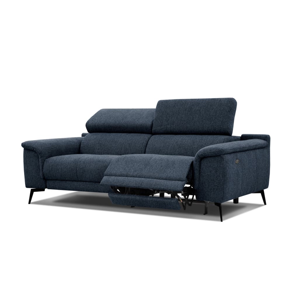 Canapé 3 places avec 1 fonction relax et appuie-tête réglables, bleu
