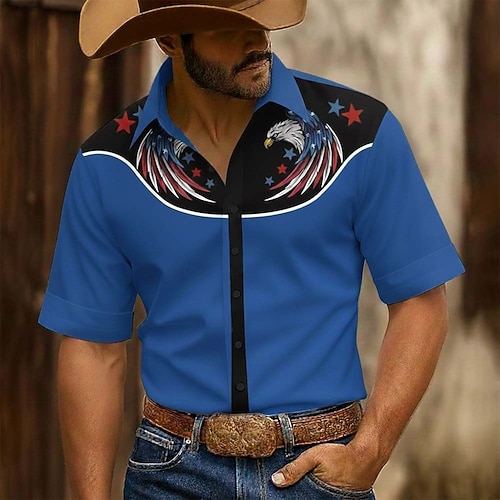Per uomo Aquila Bandiera degli Stati Uniti Patriottico Camicia Camicia Western Camicia da cowboy Manica Corta Vintage Retrò Ferie Abbigliamento da lavoro Estate Primavera Collo ripiegato Stampa 3D