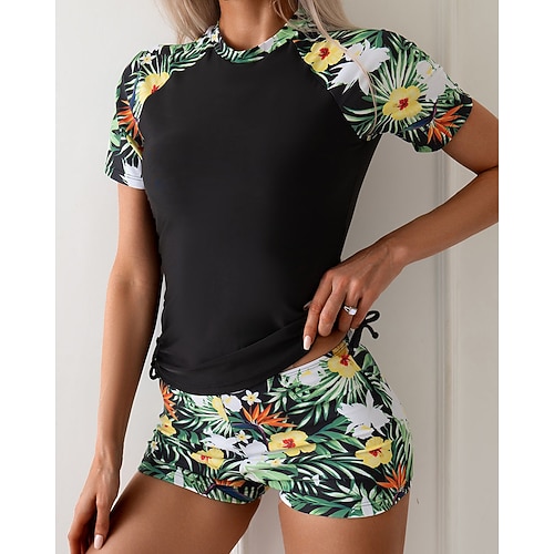 Per donna Top sottomuta Costume da bagno con stampa floreale Costume da bagno Floreale Ultra Leggero (UL) Protezione UV Elastico Manica Corta Costume da Bagno Surf Snorkeling Estate