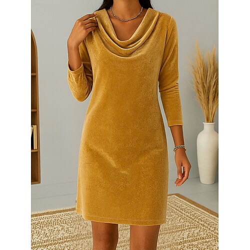Per donna Blu Blu chiaro Nero Autunno Inverno Mini Abito Abito a Tubino Festa Formale Formale Vestibilità regolare Semplice Scollo a Cascata