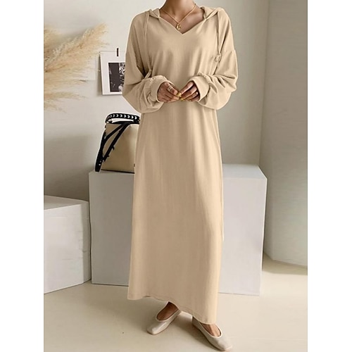 Per donna Abito maxi Abito a Tubino Casual Quotidiano Vestibilità comoda Semplice Manica Lunga Con Cappuccio Nero Marrone chiaro Grigio Primavera Autunno Inverno