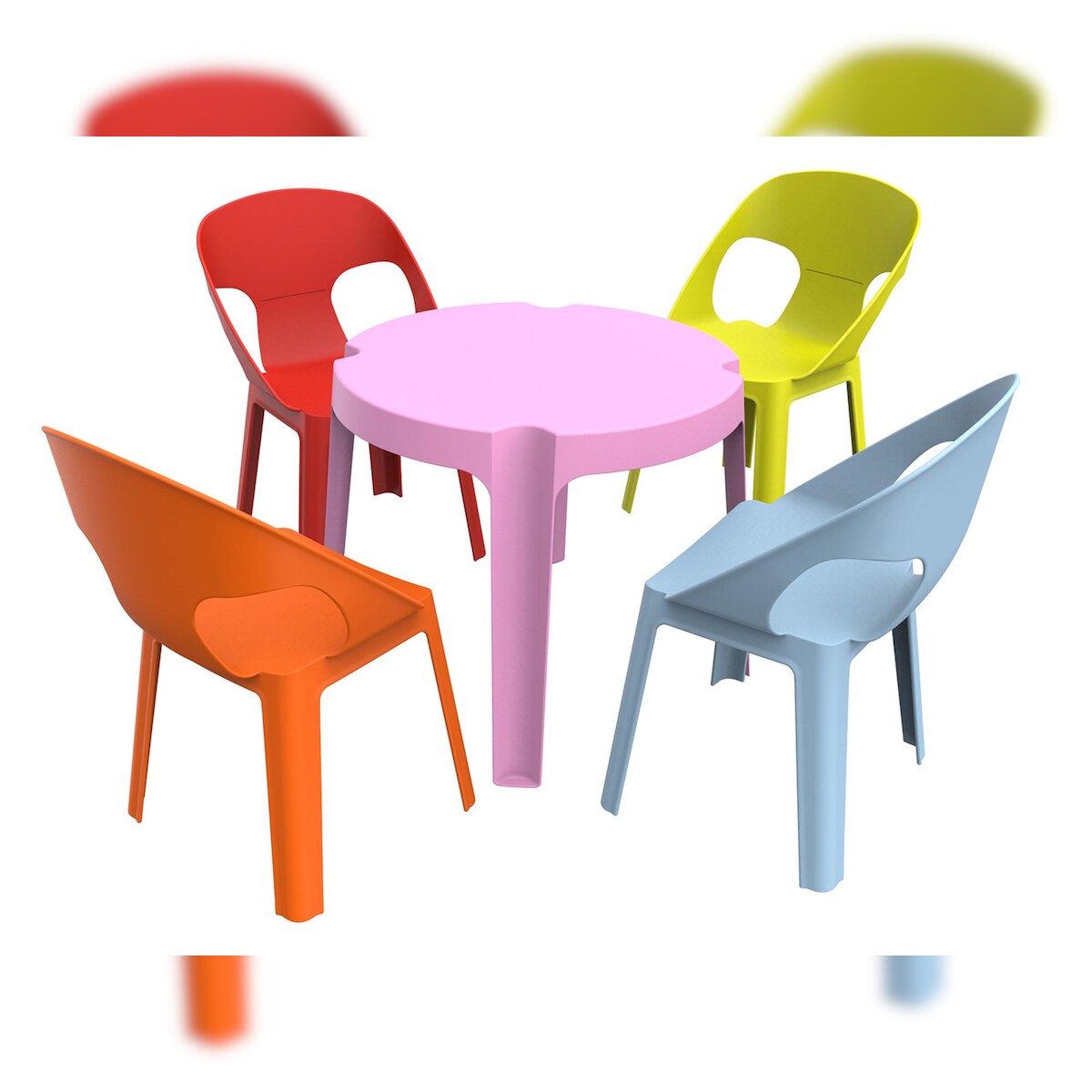 Resol garbar RITA Kinderstuhl-Tisch Indoor, Outdoor Set 4+1 Himmelblau/Rosa/Rot/Orange/Limettengrün