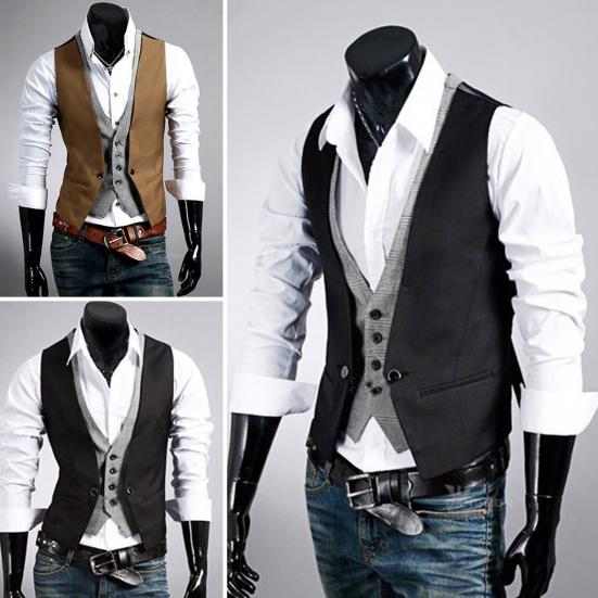Single Breasted V-Neck Suit Vest Excellent Craftsmanship Fake Two Piece Men Business Waistcoat Workwear cm tan