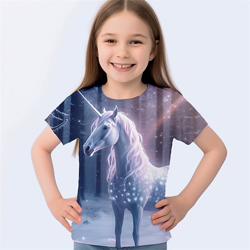 Da ragazza 3D Unicorno T-shirt Camicia Rosa Manica corta Stampa 3D Estate Attivo Di tendenza stile sveglio Poliestere Bambino 3-12 anni Girocollo Esterno Informale Giornaliero Standard