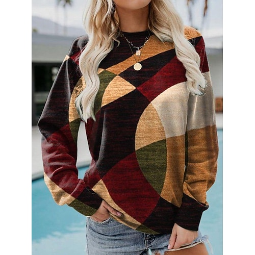 Per donna Felpa Pullover Grafico Geometrico Blocco di colori Moda Casual Manica Lunga Girocollo Top Regolari Streetwear Abbigliamento Quotidiano Casuale Stampato Nero Rosso Cachi Grigio Autunno