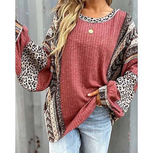 Per donna Felpa Pullover Blocco di colori A righe Casual Manica Lunga Girocollo Top Regolari Abbigliamento Quotidiano Ferie Uscire Patchwork Rosso violaceo Marrone chiaro Autunno Inverno