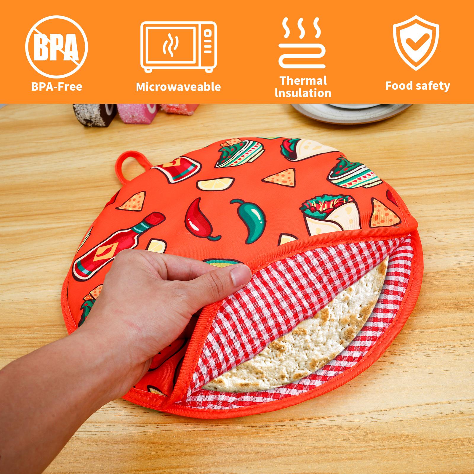 Tragbare 12-Zoll-Tortilla-Wärmetasche, isolierter mikrowellengeeigneter Stoffhalter für Pizza, Brot, doppelseitiger Tortilla-Beutelwärmer