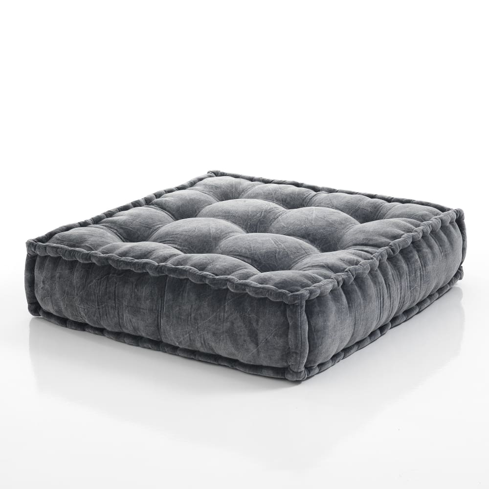 Pouf quadrato in cotone grigio non sfoderabile