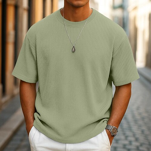 Per uomo Maglietta Waffle Maglietta Manica Corta Girocollo Estate Tutte le stagioni Tinta unica Testurizzato Moda Designer Casual Lavorato a maglia All'aperto Casuale Quotidiano Verde chiaro Blu