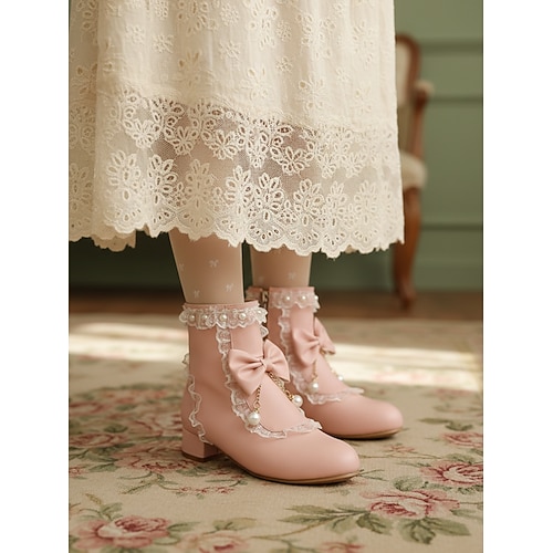 stivaletti bianchi da donna con dettaglio di perle e fiocco – ispirati al vintage anni '50, perfetti per outfit quotidiani, lolita ed eleganti