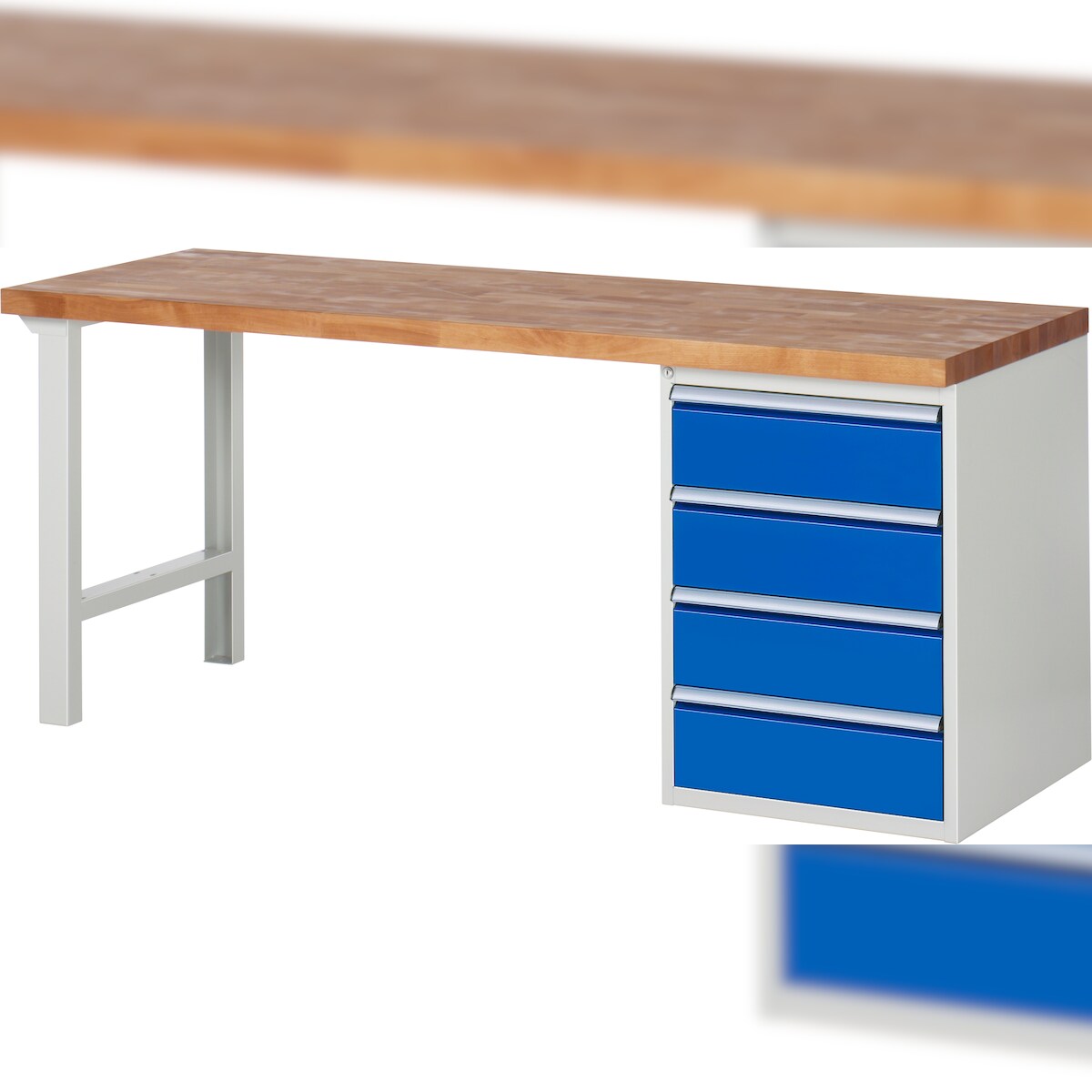 PROREGAL Werkbank Serie 7000 - Modell 7510 | HxBxT 84x100x70cm | 4x Schublade | Schubladenmaße 3x150 + 1x270mm | Lichtgrau | Arbeitstisch Werktisch