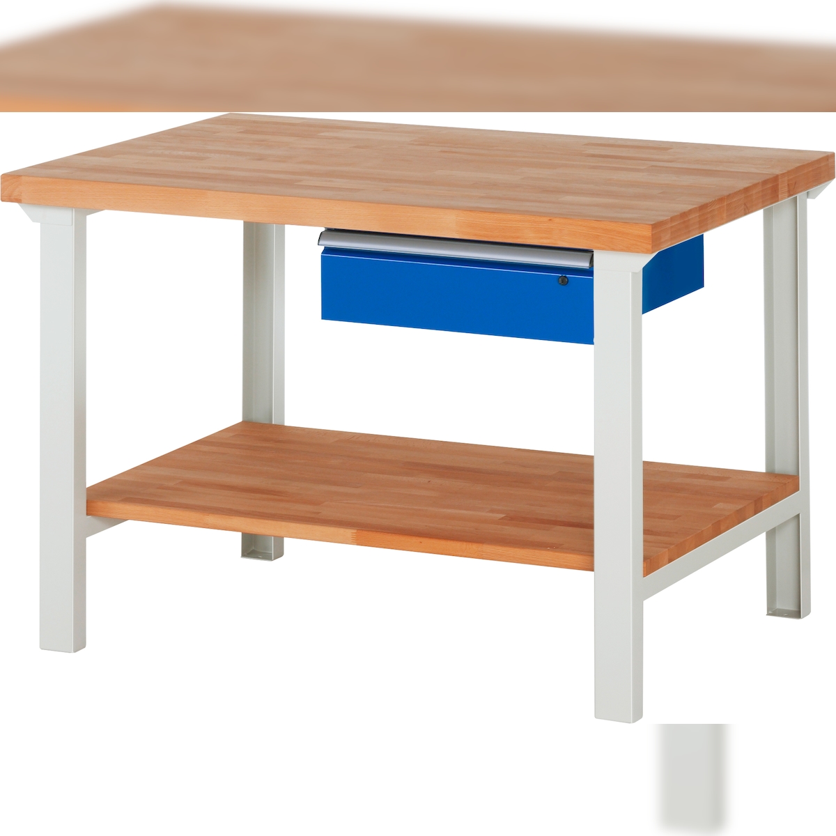 Fahrbare Werkbank Serie 7000, 2 Bock-/2 Lenkrollen, Ablageboden, Platten-BxT 1500 x 900 mm eurokraft pro