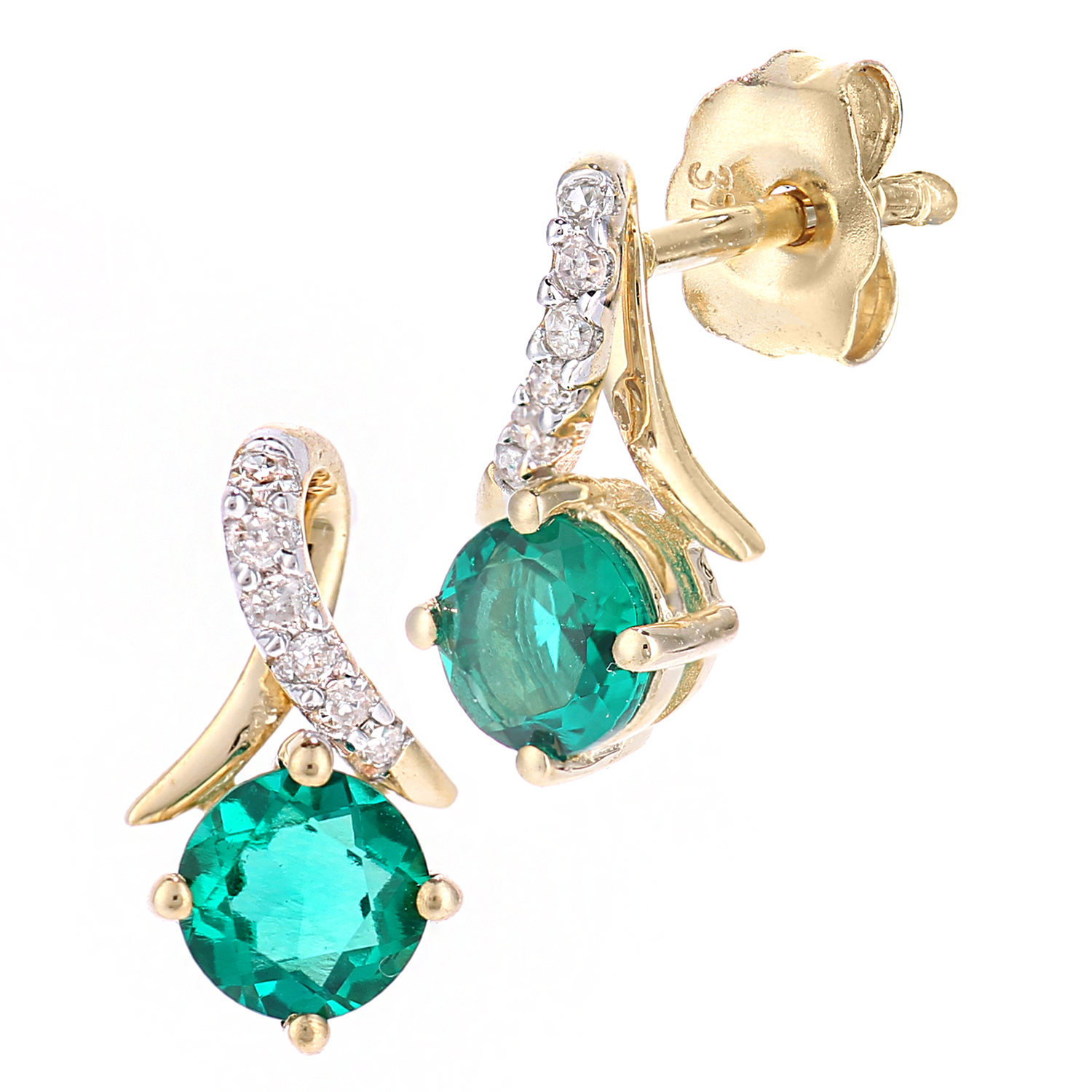 Diamant L'eternel Womens 9ct Yellow Gold 0.4ct Created Emerald and 0.05ct Diamond Earrings - One Size